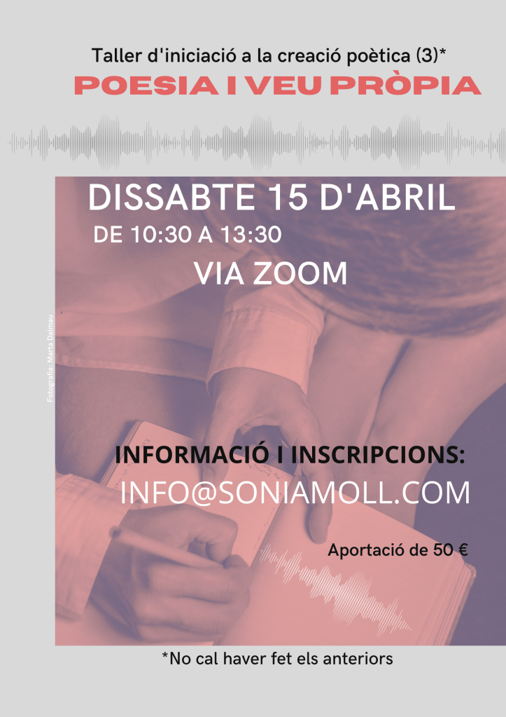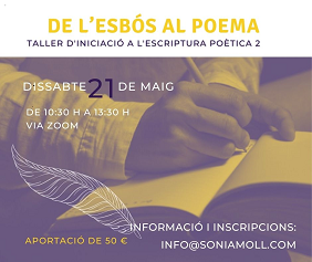 - Tallers d’introducció i animació a l’escriptura per a persones adultes. Creació literària a partir de poemes i relats curts per perdre la por al full blanc i buscar recursos creatius propis.